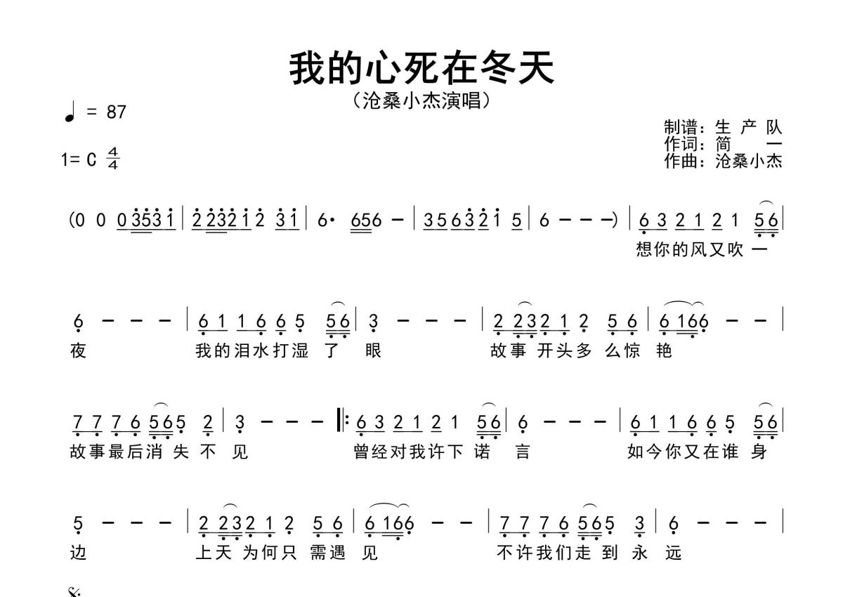 沧桑小杰《我的心死在冬天》简谱 - 原版简谱