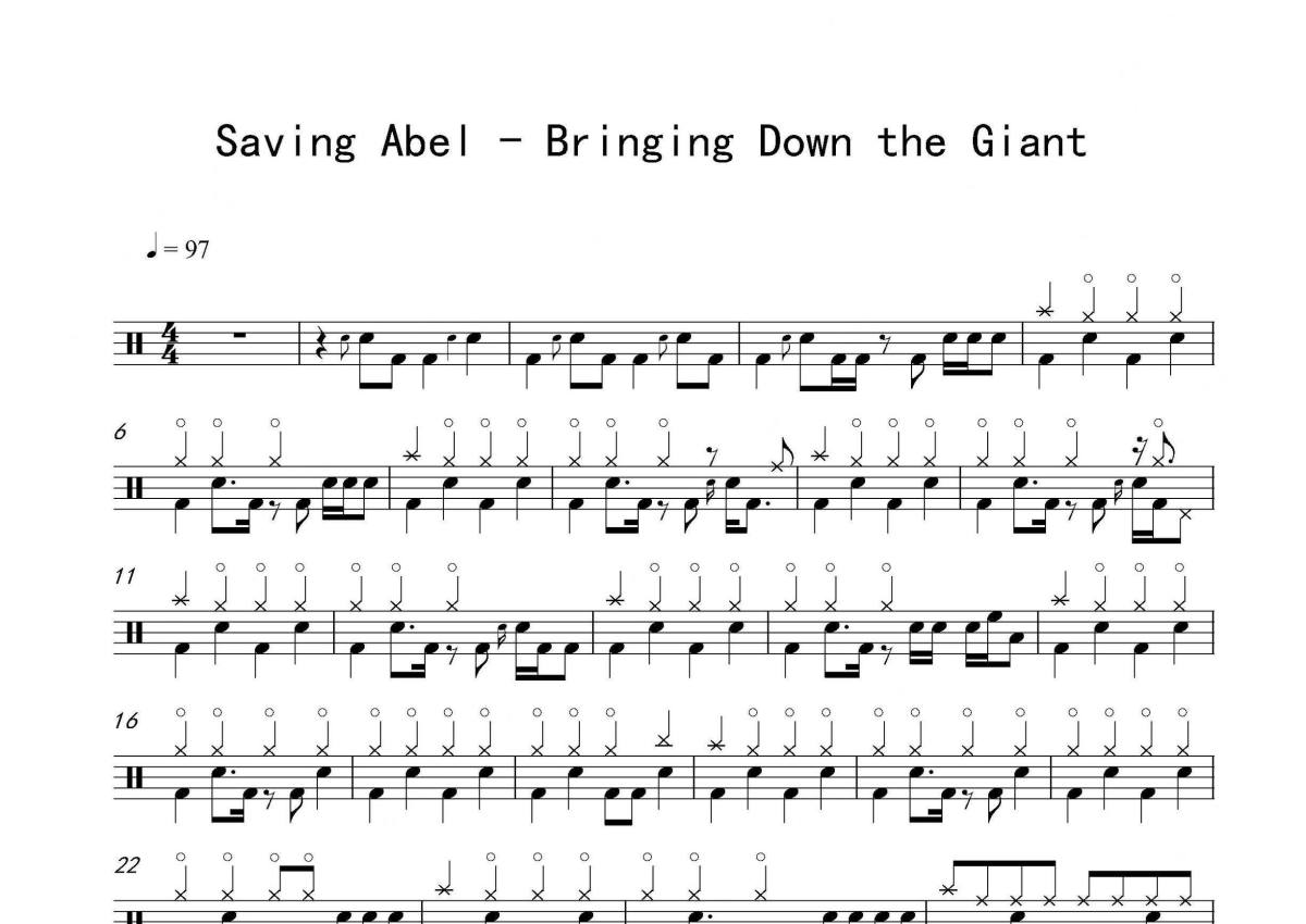 Saving Abel《Bringing Down the Giant》架子鼓谱