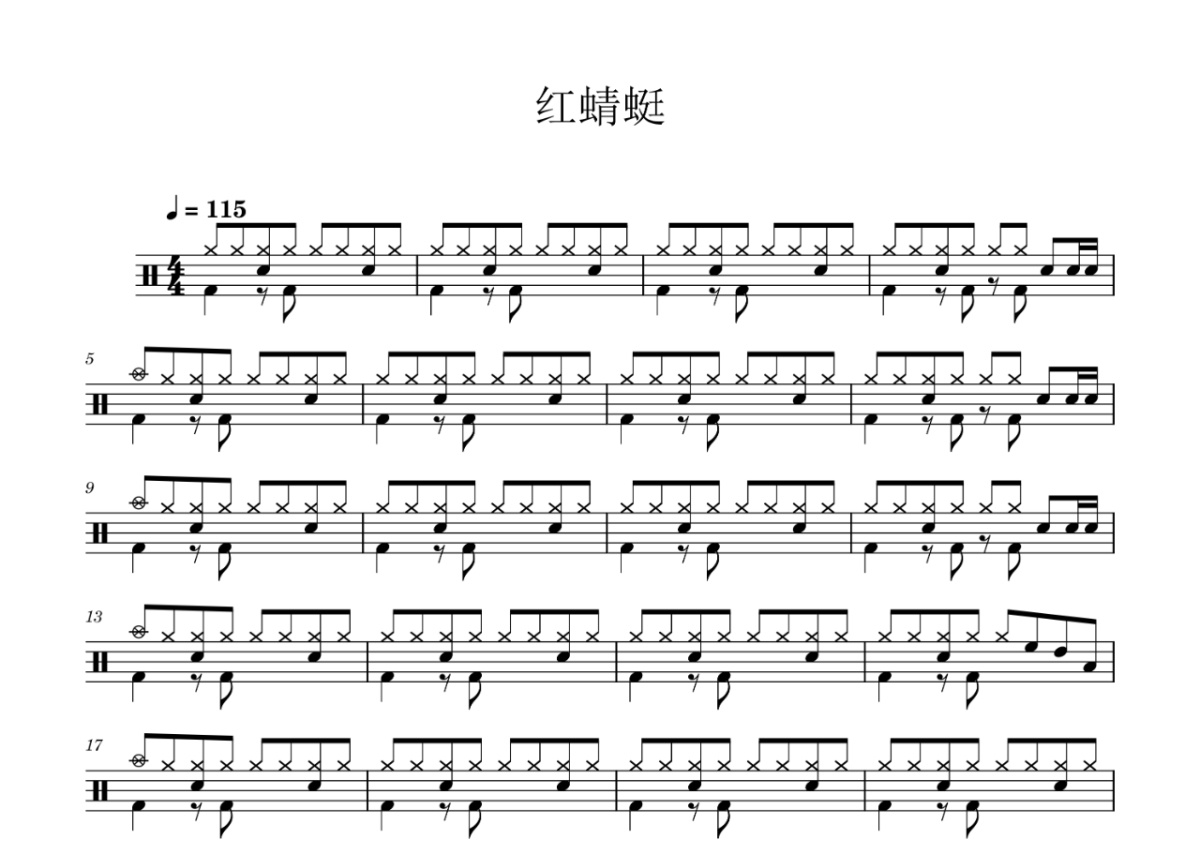 《红蜻蜓》是小虎队演唱的一首歌曲,拍号为4/4拍,歌曲速度为每分钟115拍,这份架子鼓谱共有三张高清图谱,图谱由 @音符喷血者 编配上传,图谱使用五线谱编配,使用这份红蜻蜓架子鼓谱,你将能够轻松地敲打出这首小虎队的红蜻蜓,快来尝试吧。