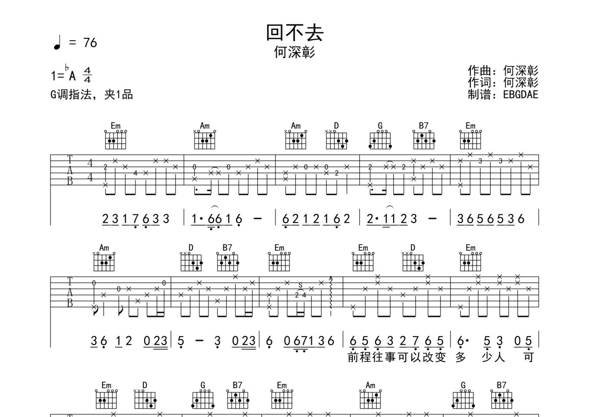 何深彰《回不去》吉他谱 - G调弹唱六线谱