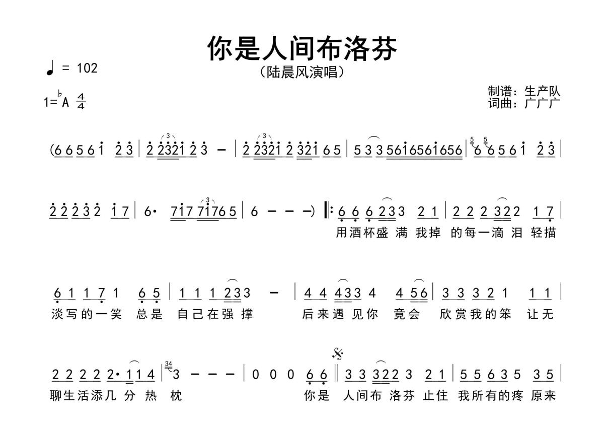 《你是人间布洛芬》是陆晨风演唱的一首歌曲,原版简谱,拍号为4/4拍,歌曲速度为每分钟102拍,这份简谱共有一张高清图谱,图谱由 @生产队 编配上传陆晨风演唱的歌曲《你是人间布洛芬》原版简谱,含精准的前奏、间奏solo编配,精编完美版,优质推荐!。