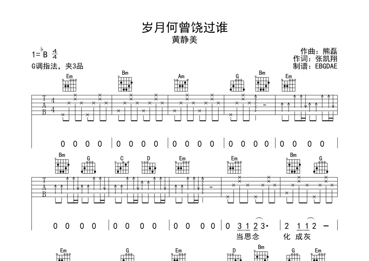 黄静美《岁月何曾饶过谁》吉他谱 - G调弹唱六线谱