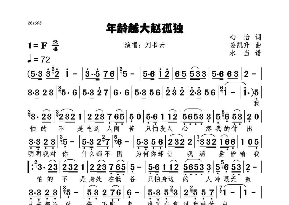 《年龄越大赵孤独》是刘书云演唱的一首歌曲,歌曲速度为每分钟72拍,这份简谱共有一张高清图谱,图谱由 @水当 编配上传。