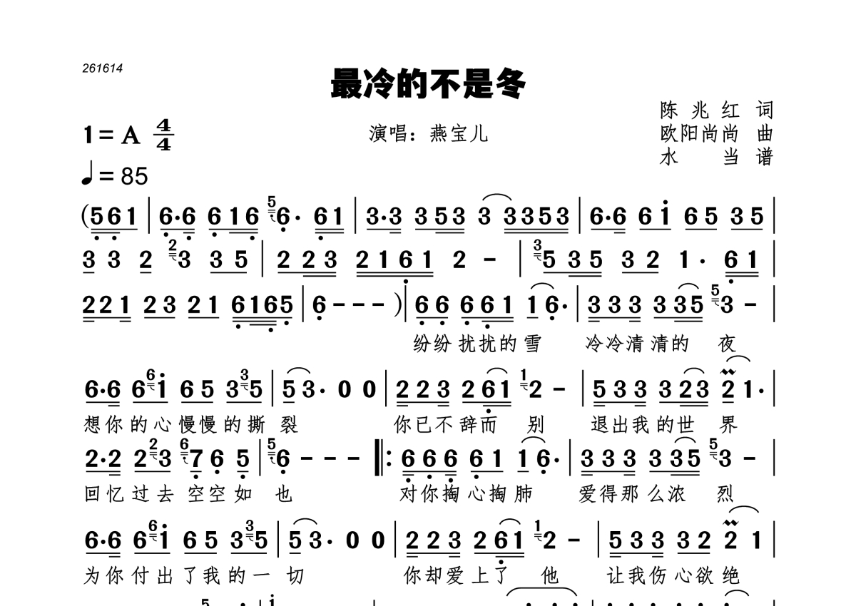 最冷的不是冬简谱 - 燕宝儿演唱