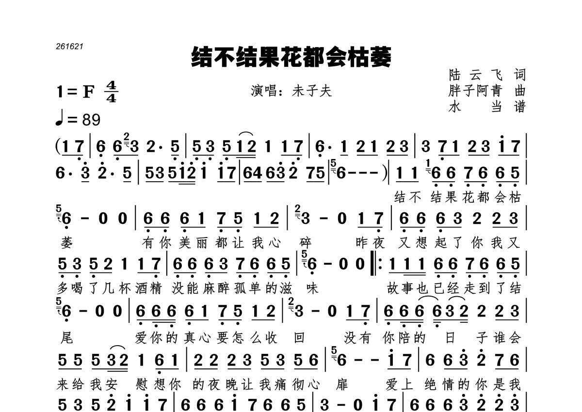 结不结果花都会枯萎简谱 - 未子夫演唱