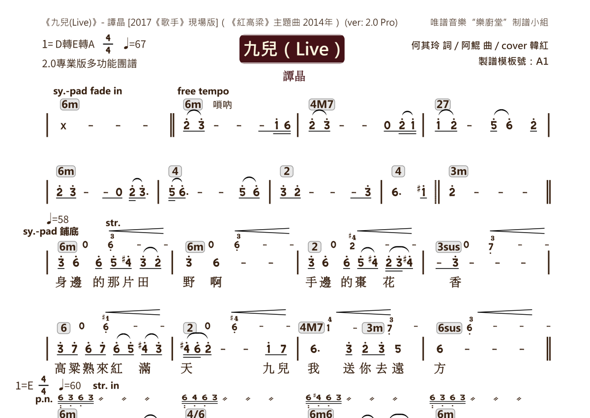 谭晶《九儿(Live)》乐队总谱 - 2.0版多功能团谱
