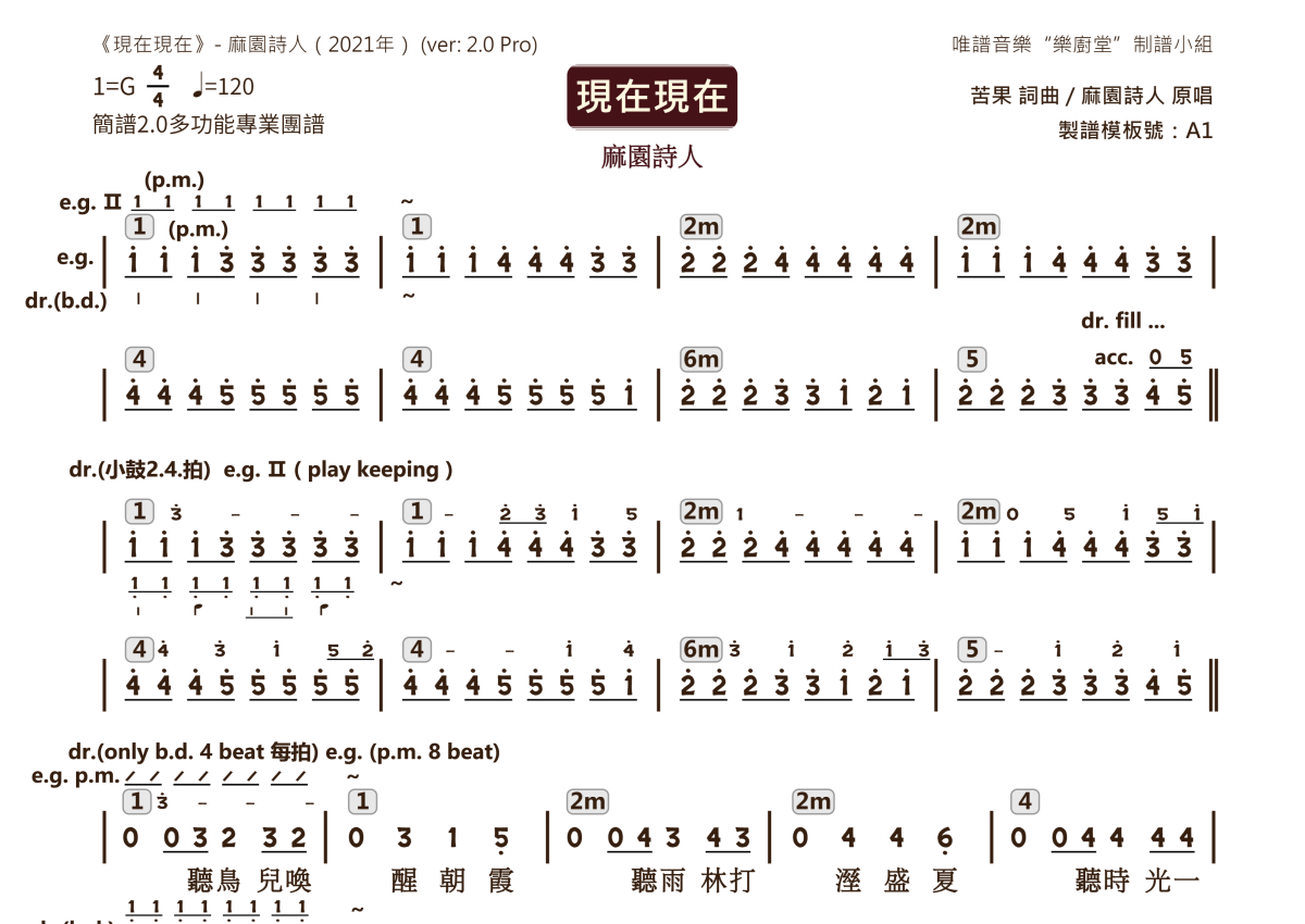 麻园诗人《现在现在》乐队总谱 - 2.0版多功能团谱