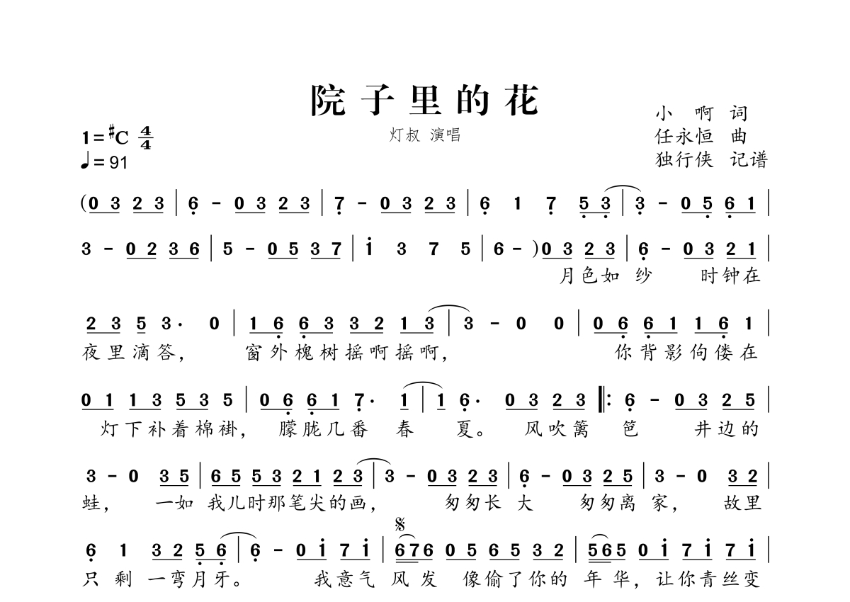 院子里的花简谱 - 灯叔演唱