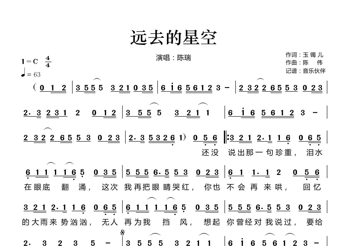 远去的星空简谱 - 陈瑞演唱
