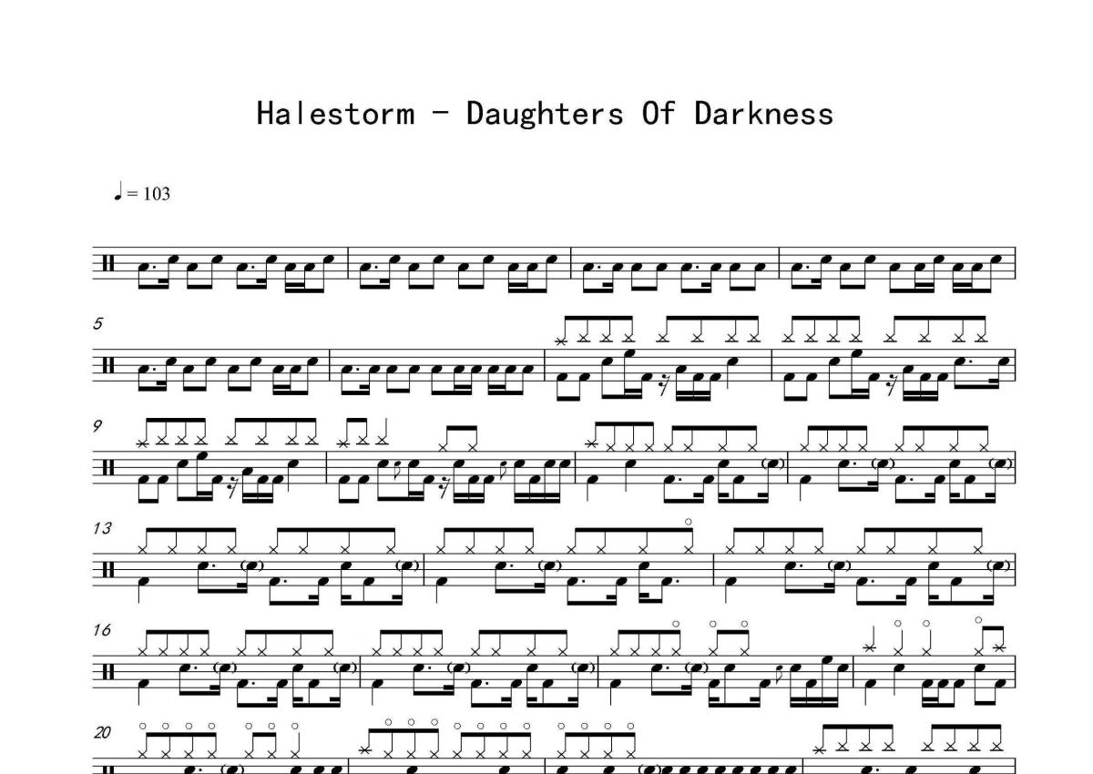 Halestorm《Daughters Of Darkness》架子鼓谱