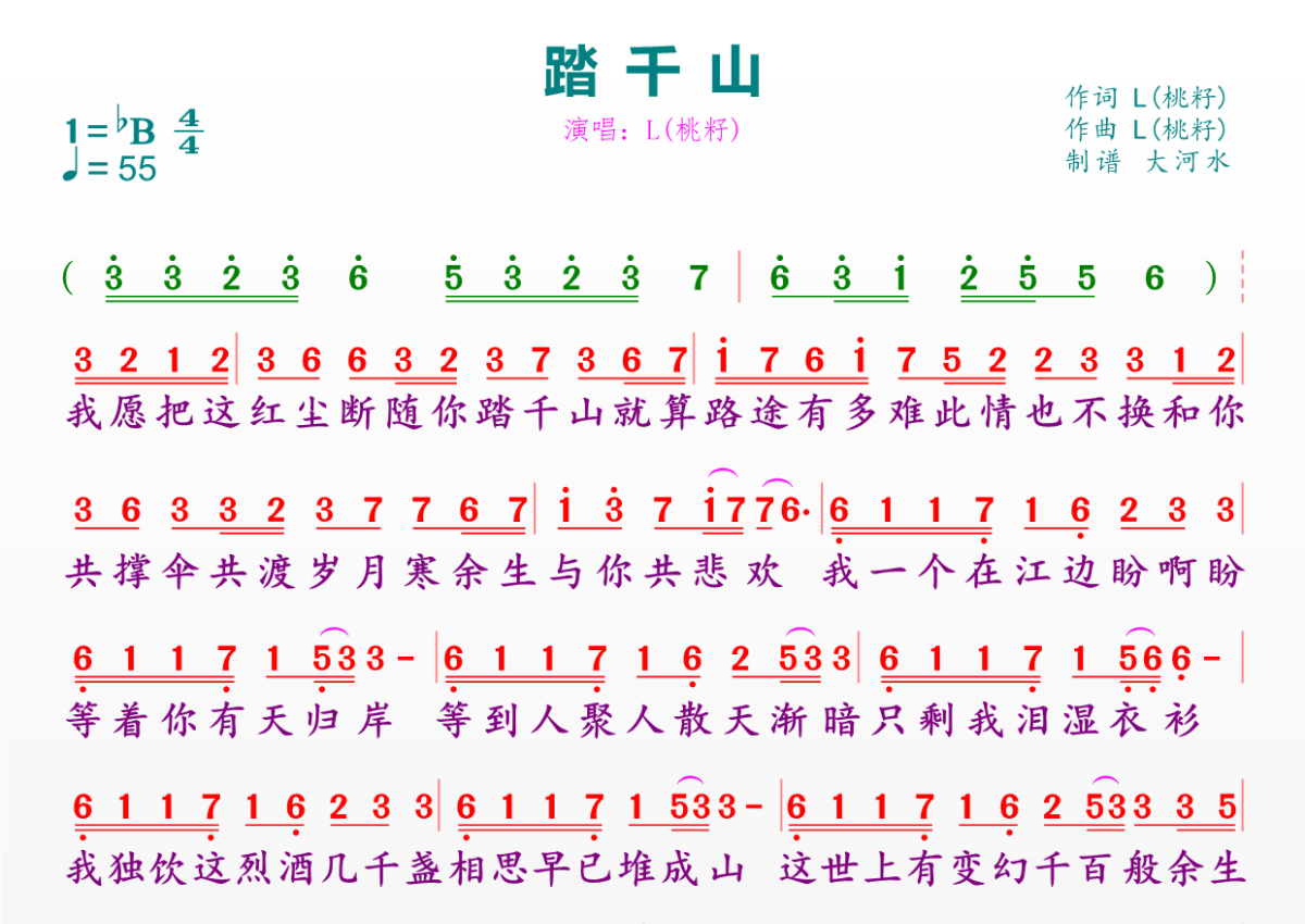 踏千山简谱 - L(桃籽)演唱