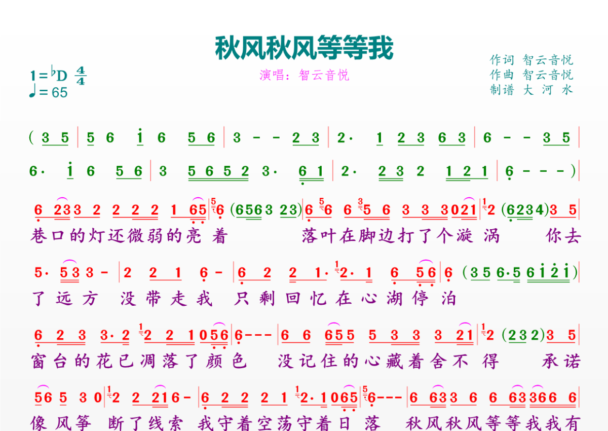 秋风秋风等等我简谱 - 智云音悦演唱