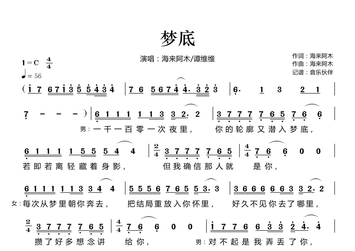 梦底简谱 - 海来阿木音乐伙伴编配