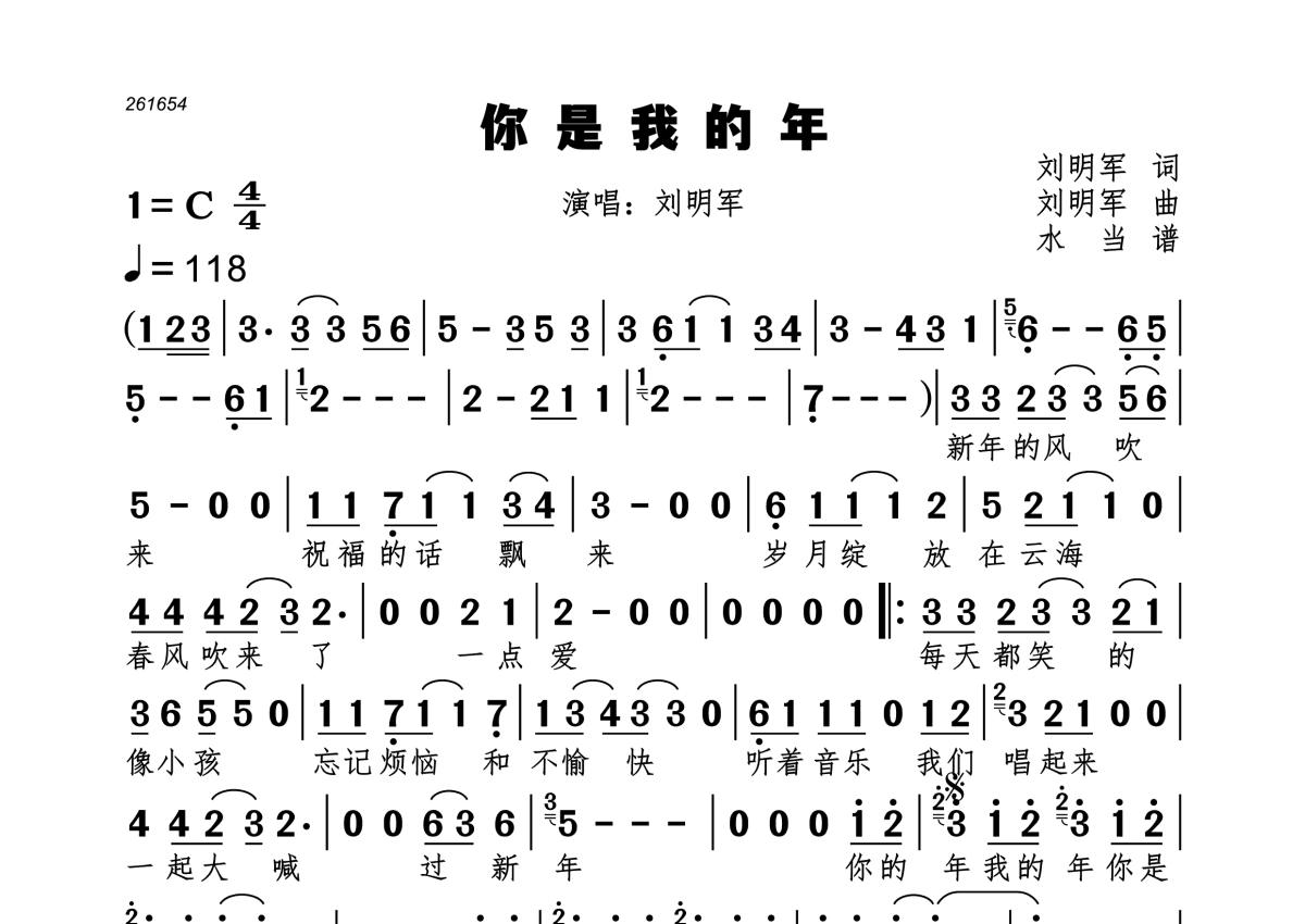 你是我的年简谱 - 刘明军演唱