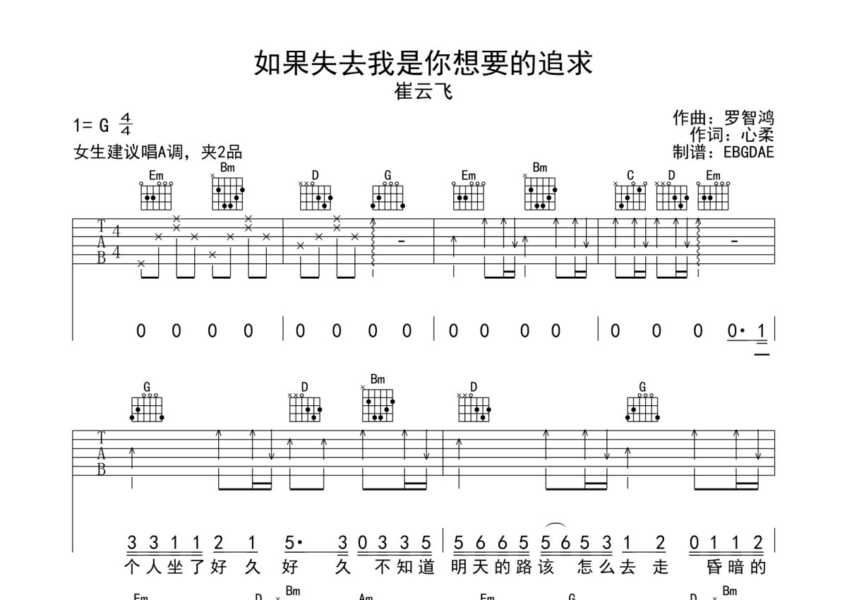崔云飞《如果失去我是你想要的追求》吉他谱 - G调弹唱六线谱