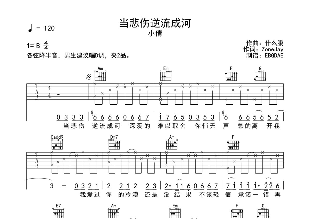 《当悲伤逆流成河》是小倩演唱的一首歌曲,本吉他谱采用的是C调指法编配,这份吉他谱共有三张高清图谱,图谱由 @EBGDAE 编配上传,图谱使用六线谱编配,包含吉他和弦指法、简谱以及歌词部分,使用这份当悲伤逆流成河吉他谱,可以让你更加方便地掌握这首歌曲的弹唱技巧,快来尝试吧。物美价廉,放心选购!加油!。