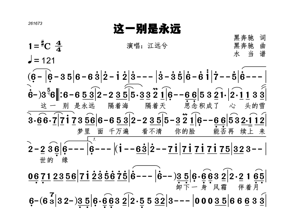 这一别是永远简谱 - 江远兮演唱