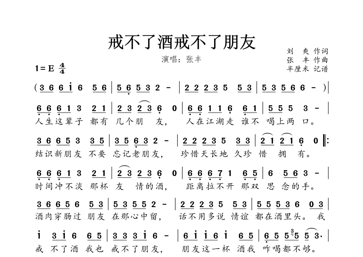 戒不了酒戒不了朋友简谱 - 张丰演唱