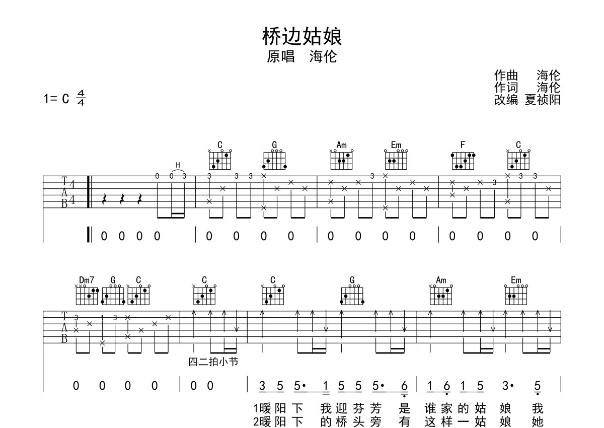 海伦《桥边姑娘》吉他谱 - C调弹唱六线谱