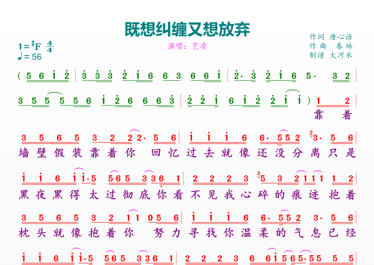 《既想纠缠又想放弃》是艺凌演唱的一首歌曲,歌曲速度为每分钟56拍,这份简谱共有一张高清图谱,图谱由 @临海雪原 编配上传。