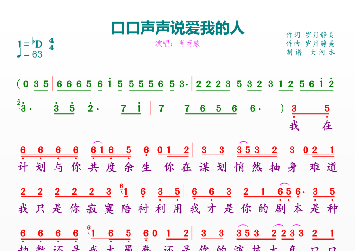 口口声声说爱我的人简谱 - 肖雨濛演唱