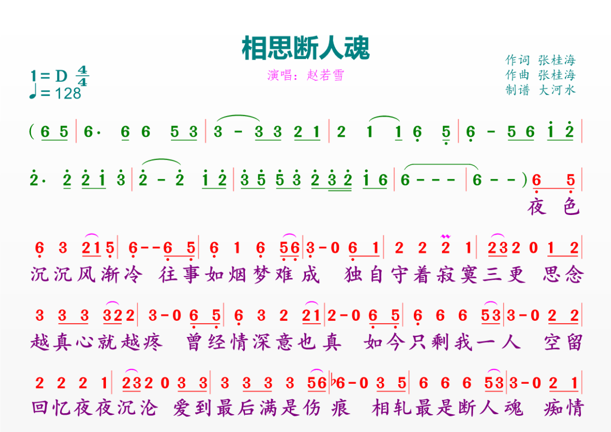 相思断人魂简谱 - 赵若雪演唱
