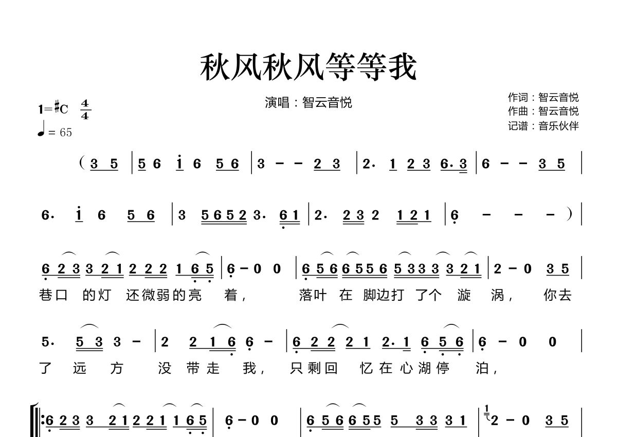 秋风秋风等等我简谱 - 智云音悦智云音悦演唱
