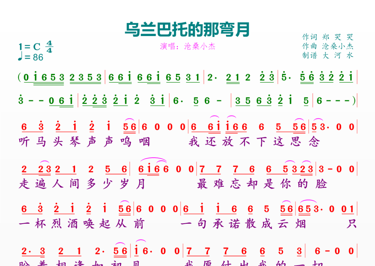 《乌兰巴托的那弯月》简谱 - 沧桑小杰