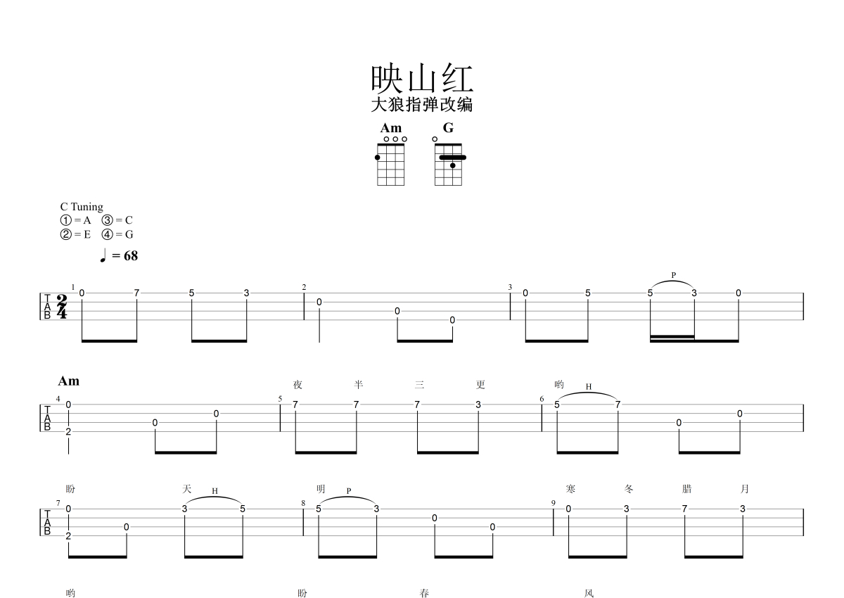大狼指弹《映山红》尤克里里谱 - C调尤克里里谱 - 指弹