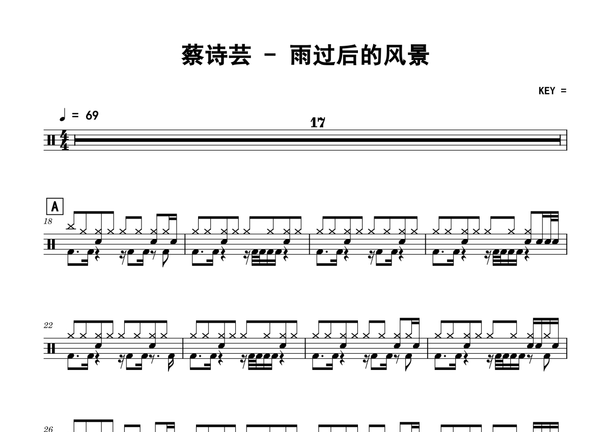 蔡诗芸《雨过后的风景》架子鼓谱