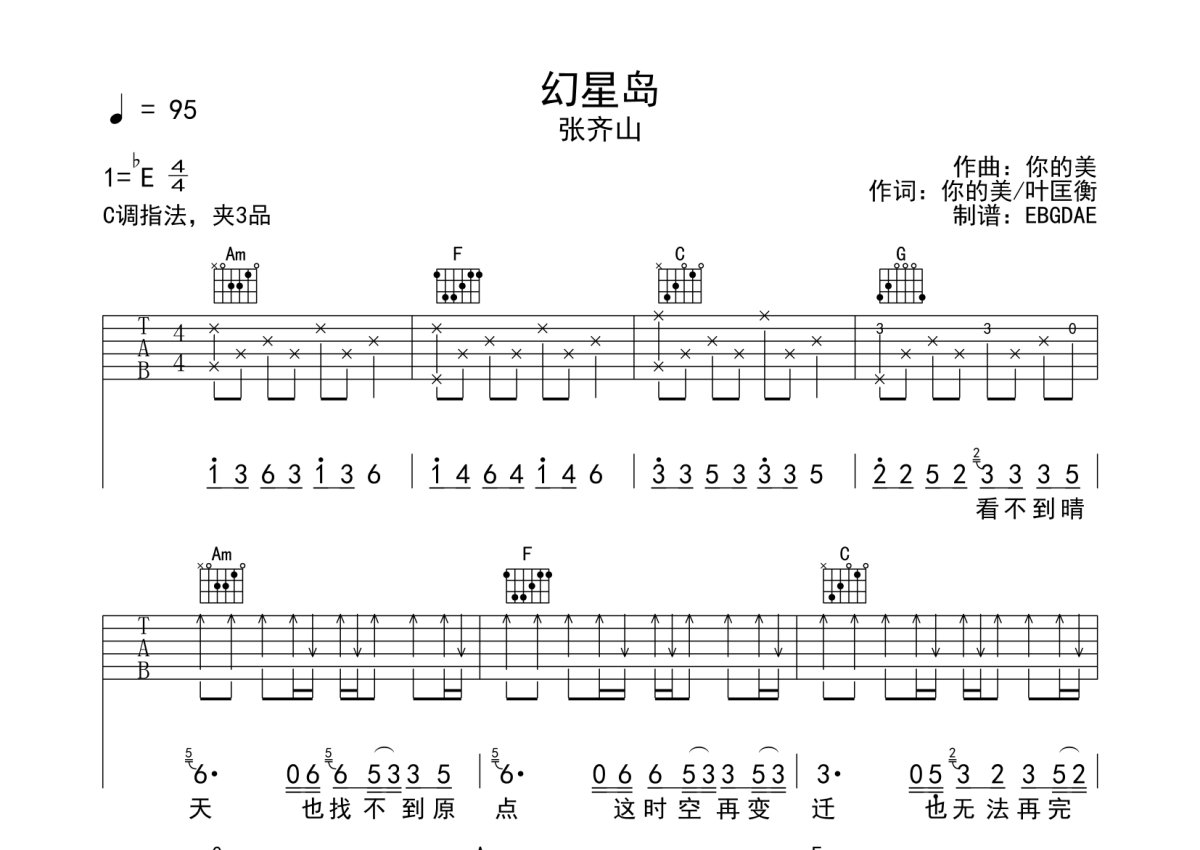 张齐山《幻星岛》吉他谱 - 弹唱六线谱