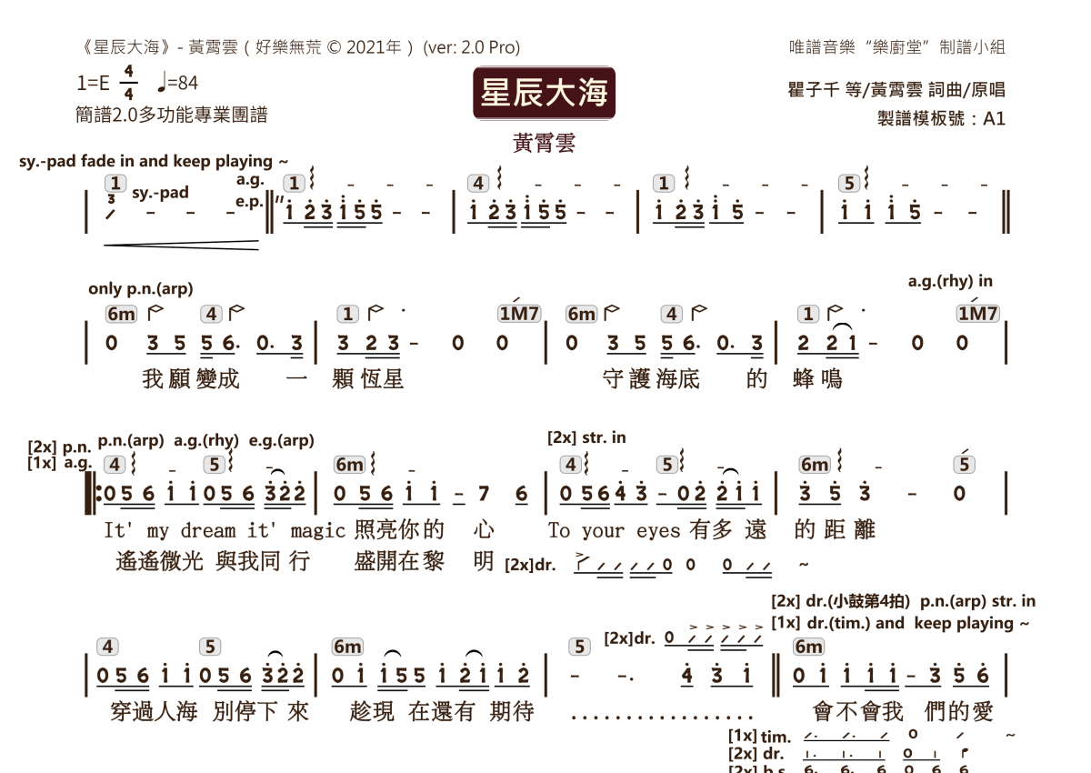 黄霄云《星辰大海》乐队总谱 - 2.0版多功能团谱