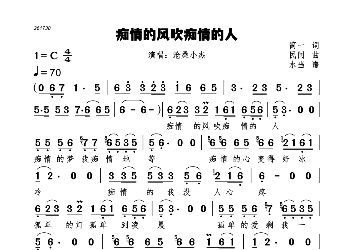 痴情的风吹痴情的人简谱 - 沧桑小杰演唱