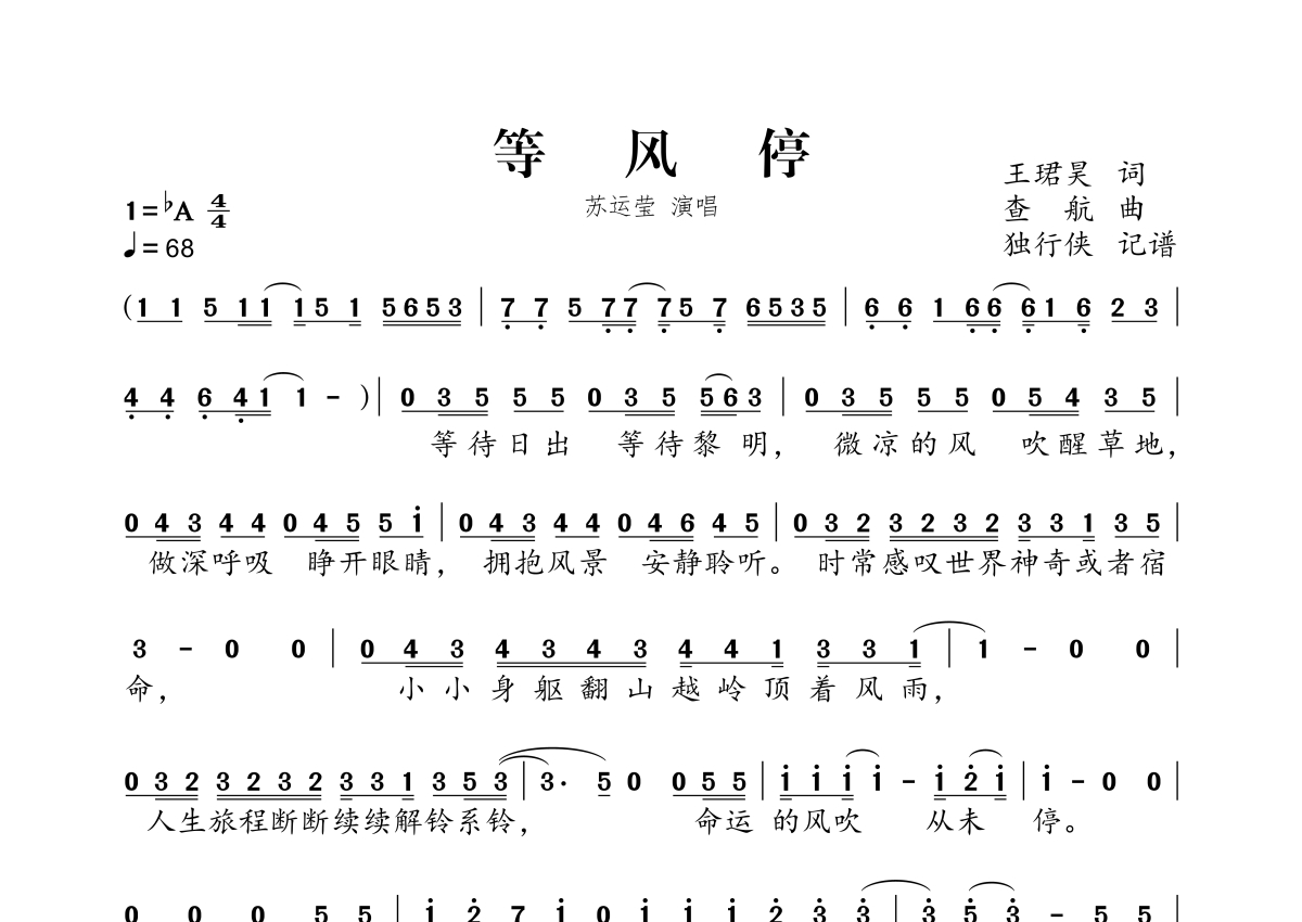 等风停简谱 - 苏运莹演唱