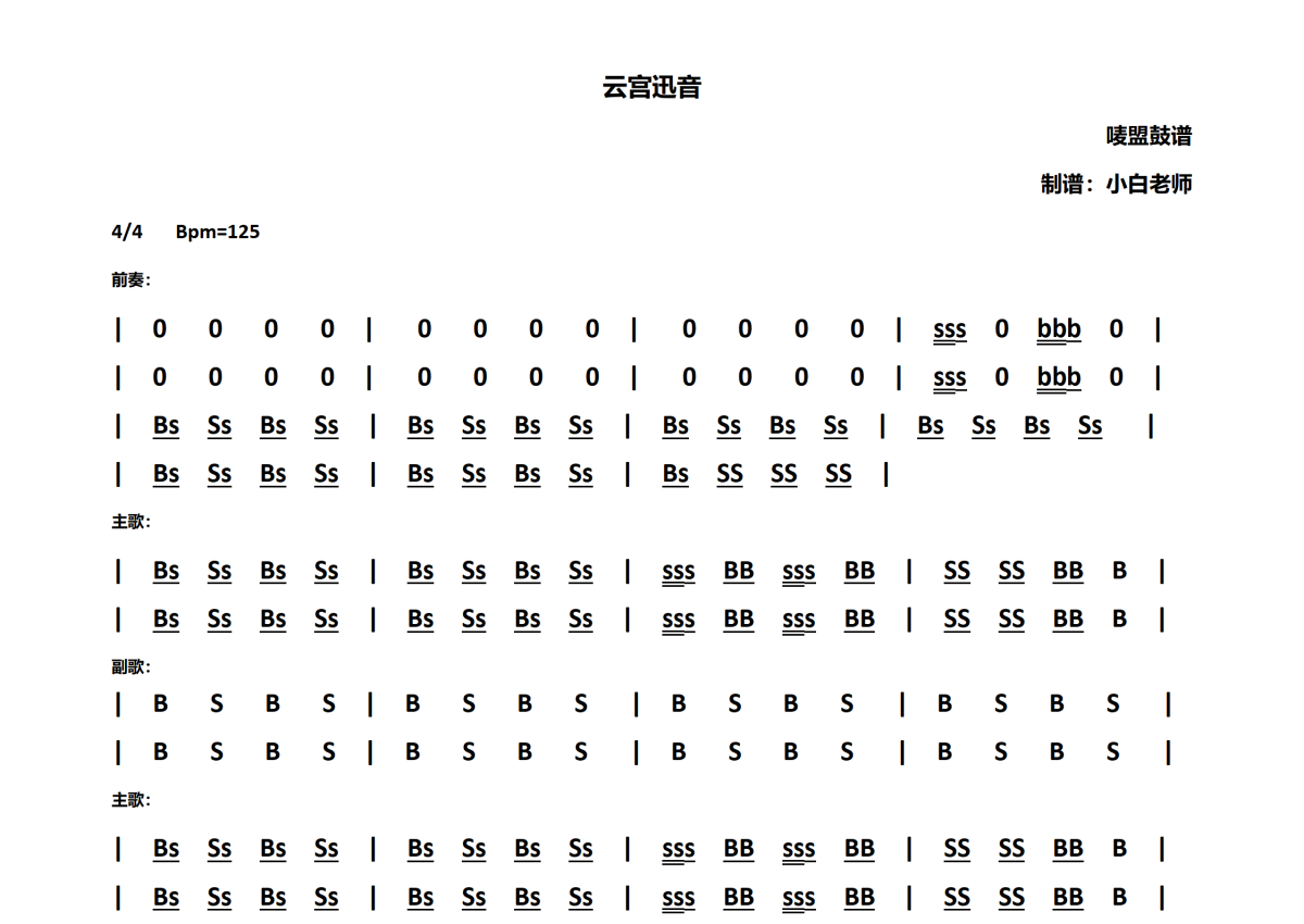 《云宫讯音》是西游记配乐演唱的一首歌曲,拍号为4/4拍,这份非洲鼓谱共有一张高清图谱,图谱由 @苏小白 编配上传。