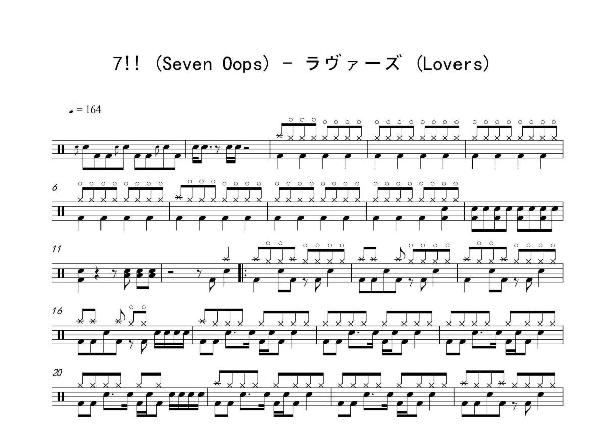 《Lovers》是Seven Oops演唱的一首歌曲,拍号为4/4拍,歌曲速度为每分钟164拍,这份架子鼓谱共有两张高清图谱,图谱由 @音符喷血者 编配上传,图谱使用五线谱编配,使用这份Lovers架子鼓谱,你将能够轻松地敲打出这首Seven Oops的Lovers,快来尝试吧。