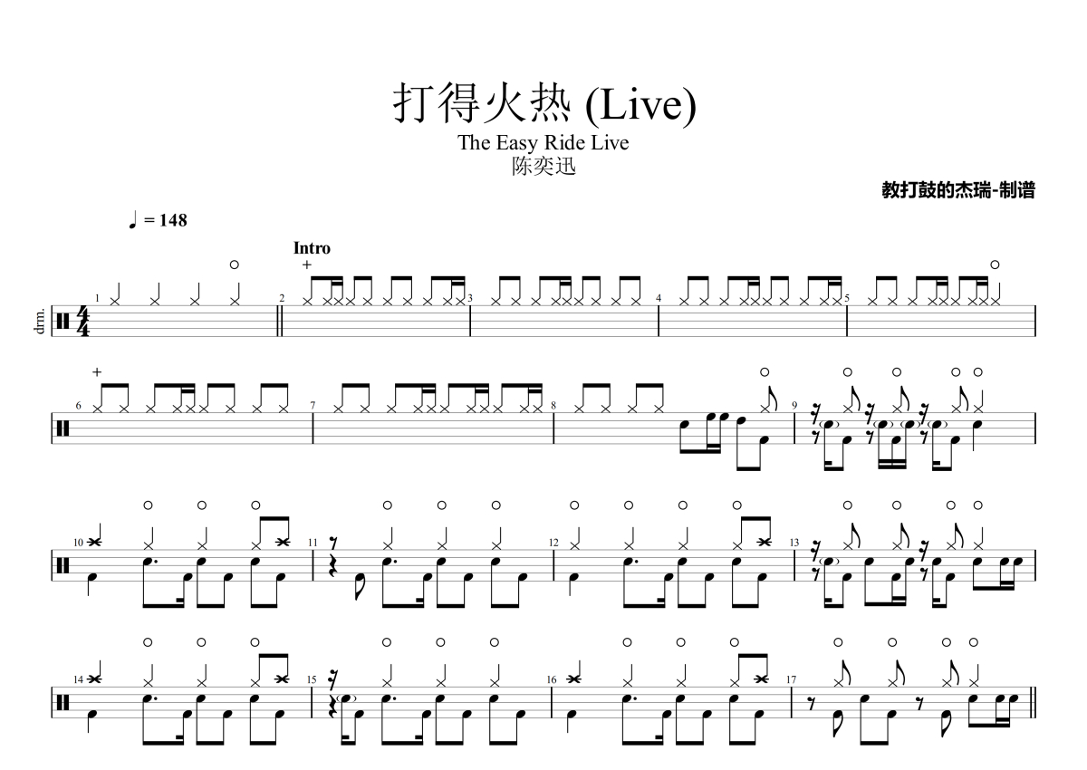 陈奕迅《打得火热 (Live)》架子鼓谱 - The Easy Ride Live