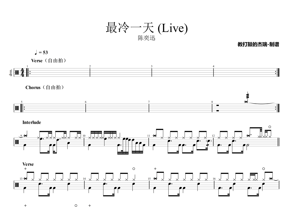 陈奕迅《最冷一天 (Live)》架子鼓谱