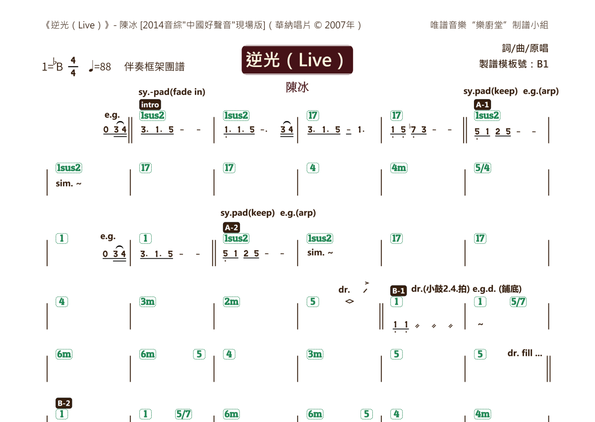 陈冰《逆光(Live)》乐队总谱 - 基础框架版团谱