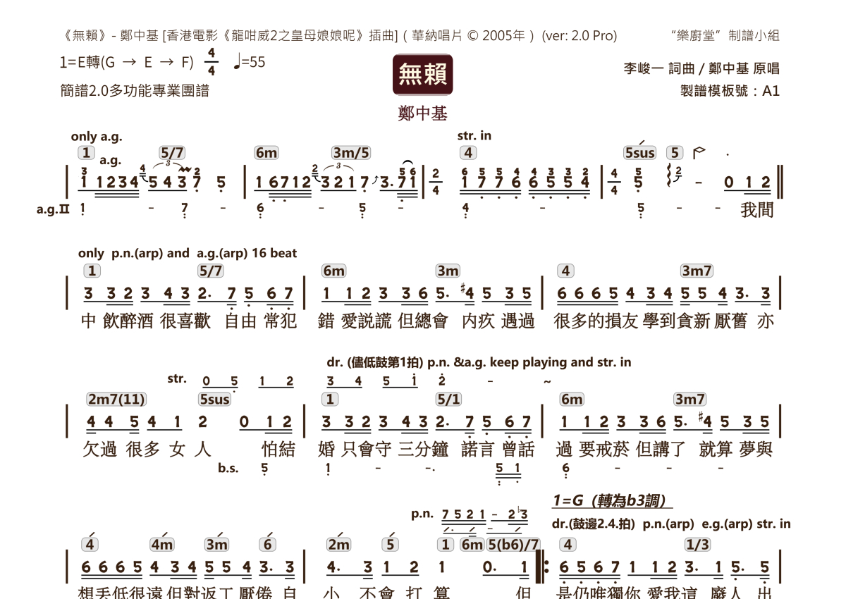郑中基《无赖》乐队总谱 - 2.0版多功能团谱