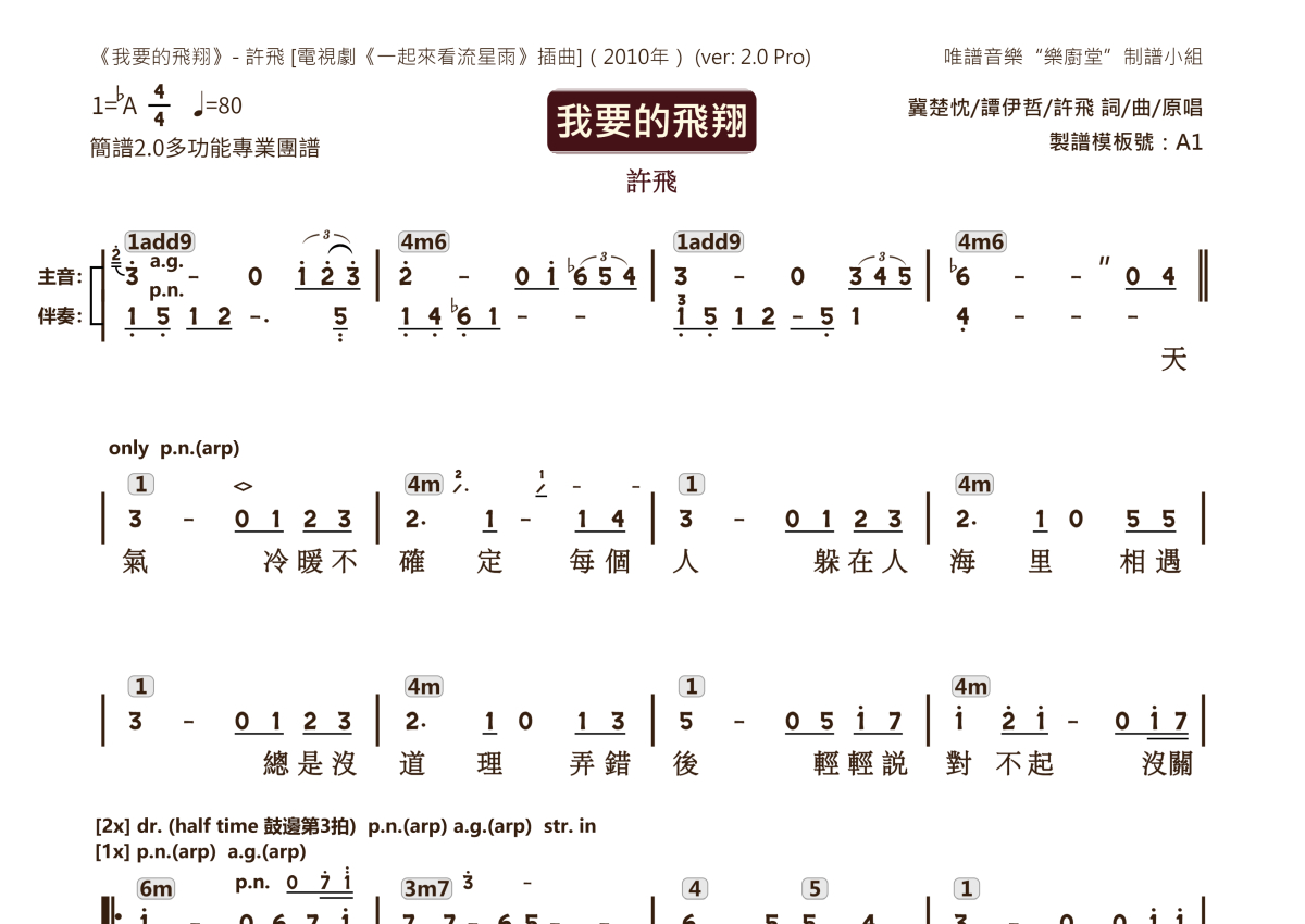 许飞《我要的飞翔》乐队总谱 - 2.0版多功能团谱