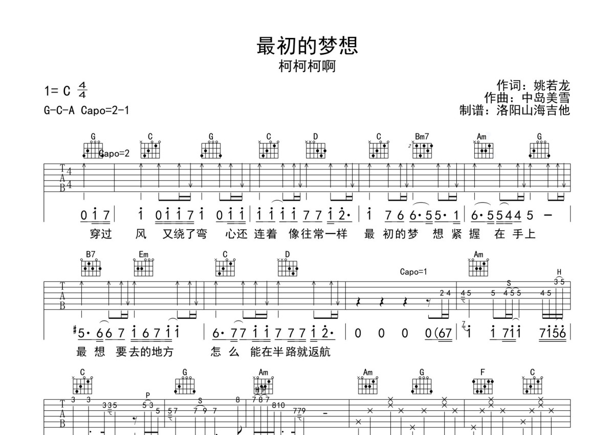 柯柯柯啊《最初的梦想》吉他谱 - C调弹唱六线谱
