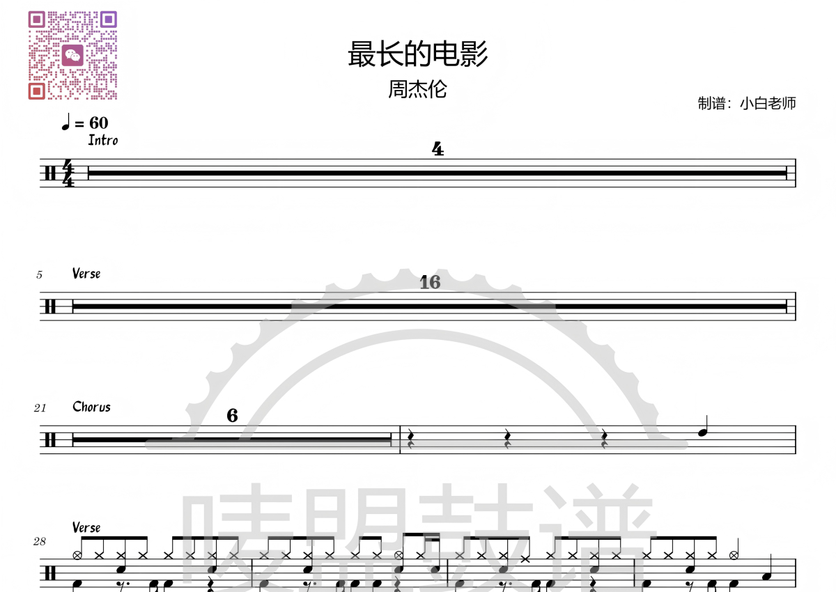 《最长的电影》架子鼓谱 - 周杰伦