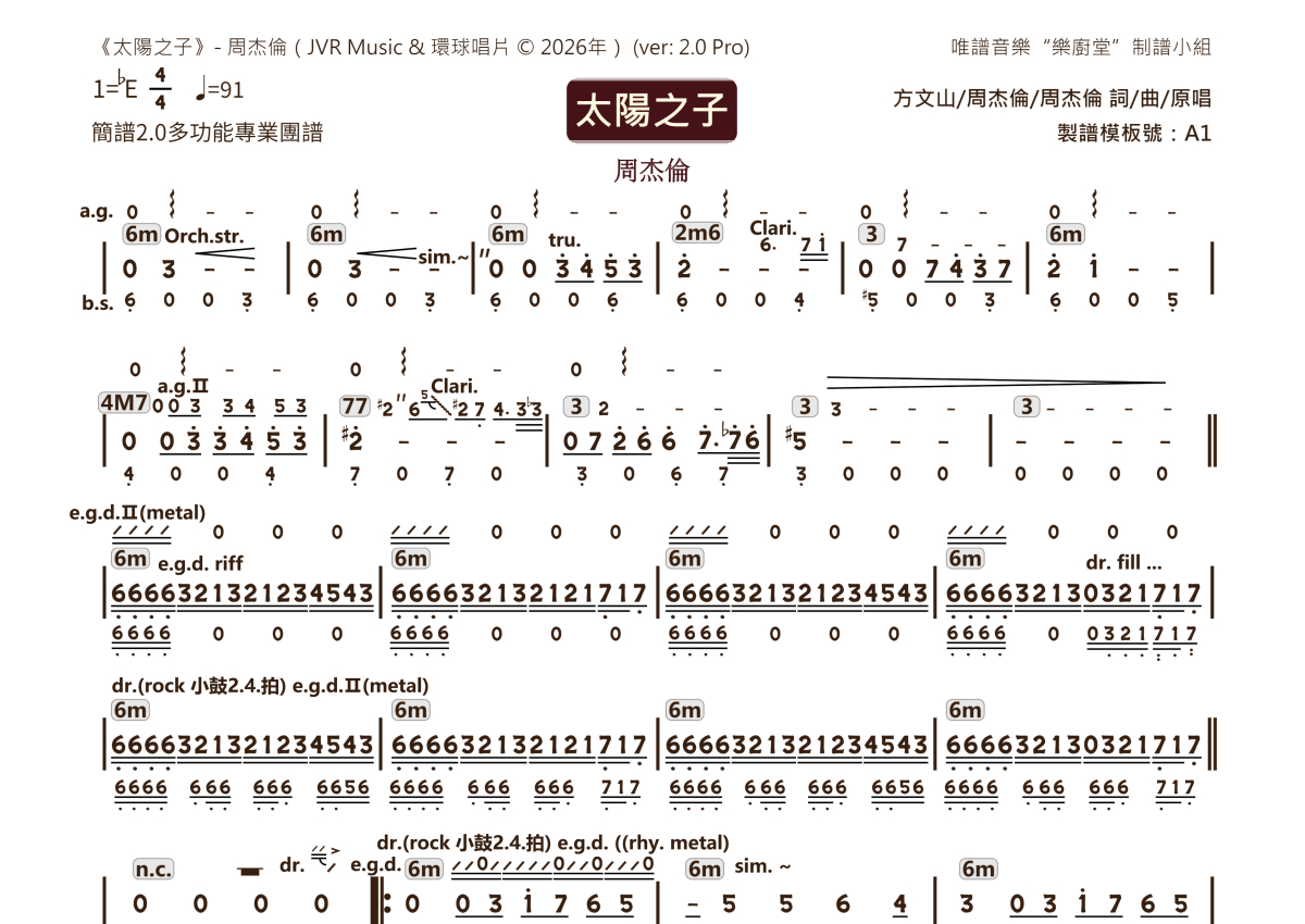 周杰伦《太阳之子》乐队总谱 - 2.0版多功能团谱