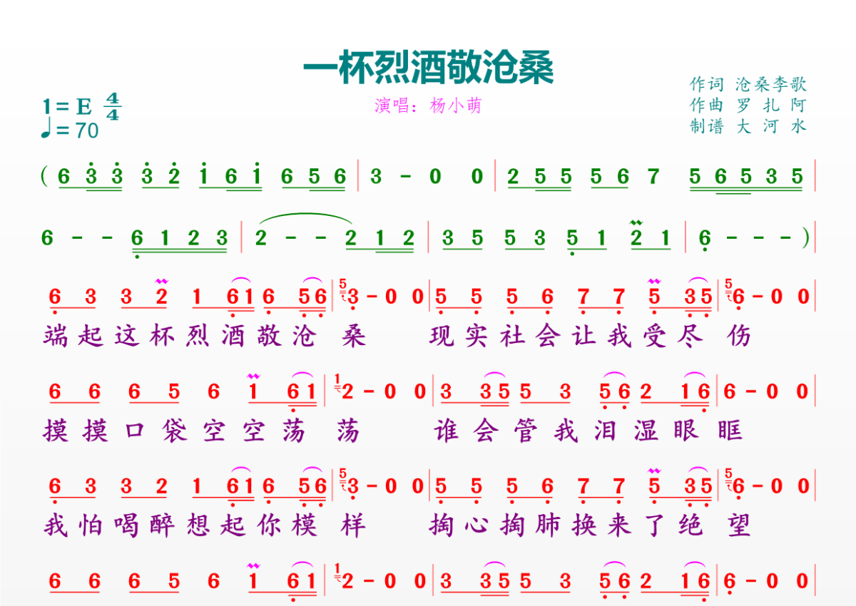 一杯烈酒敬沧桑简谱 - 杨小萌演唱