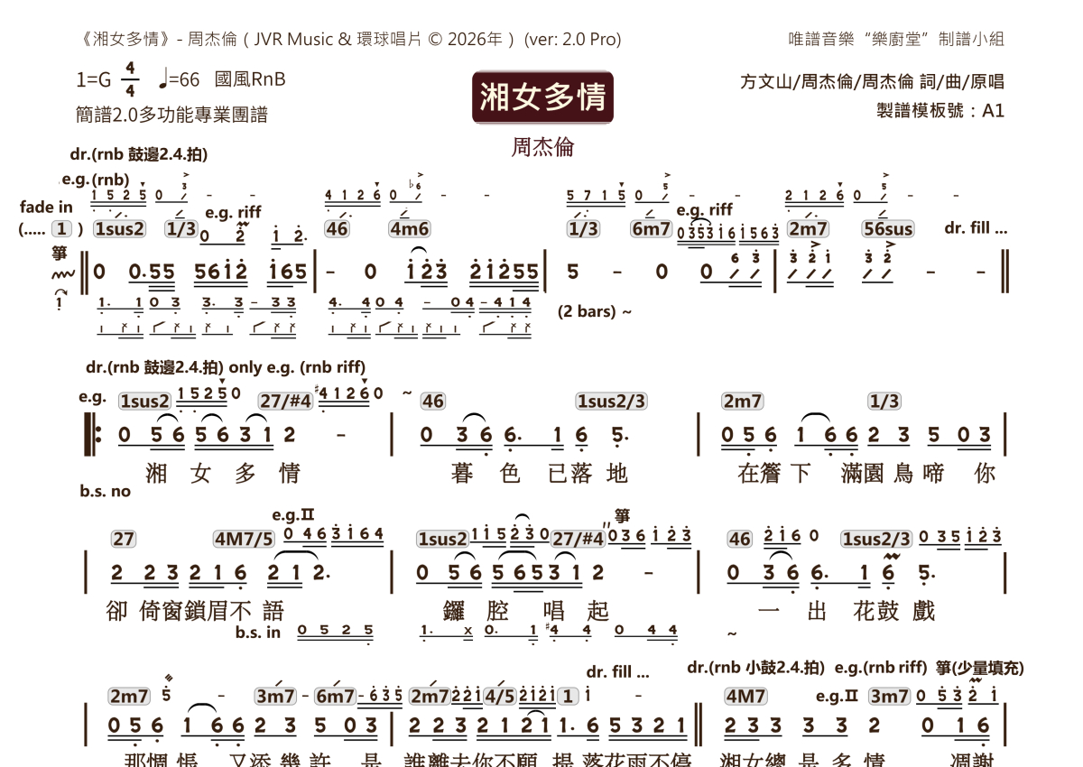 周杰伦《湘女多情》乐队总谱 - 2.0版多功能团谱