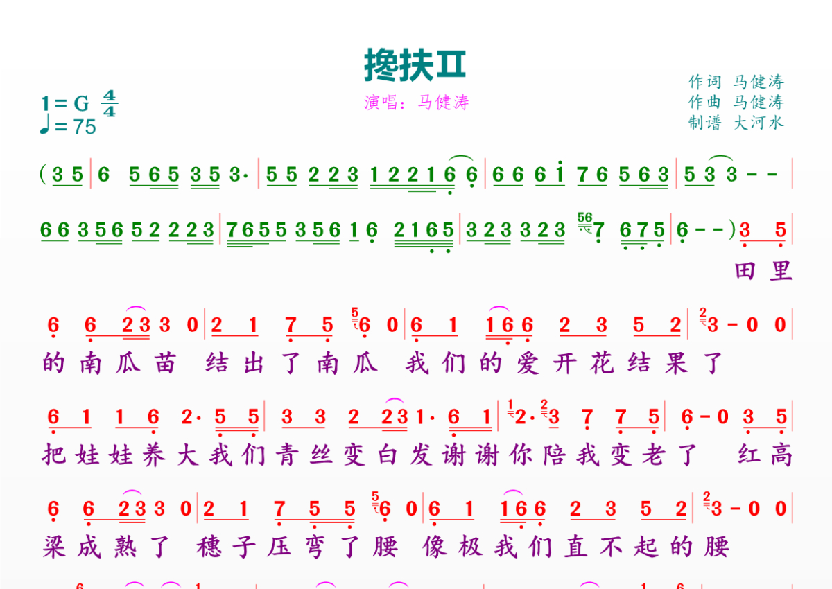 搀扶-Ⅱ简谱 - 马健涛演唱