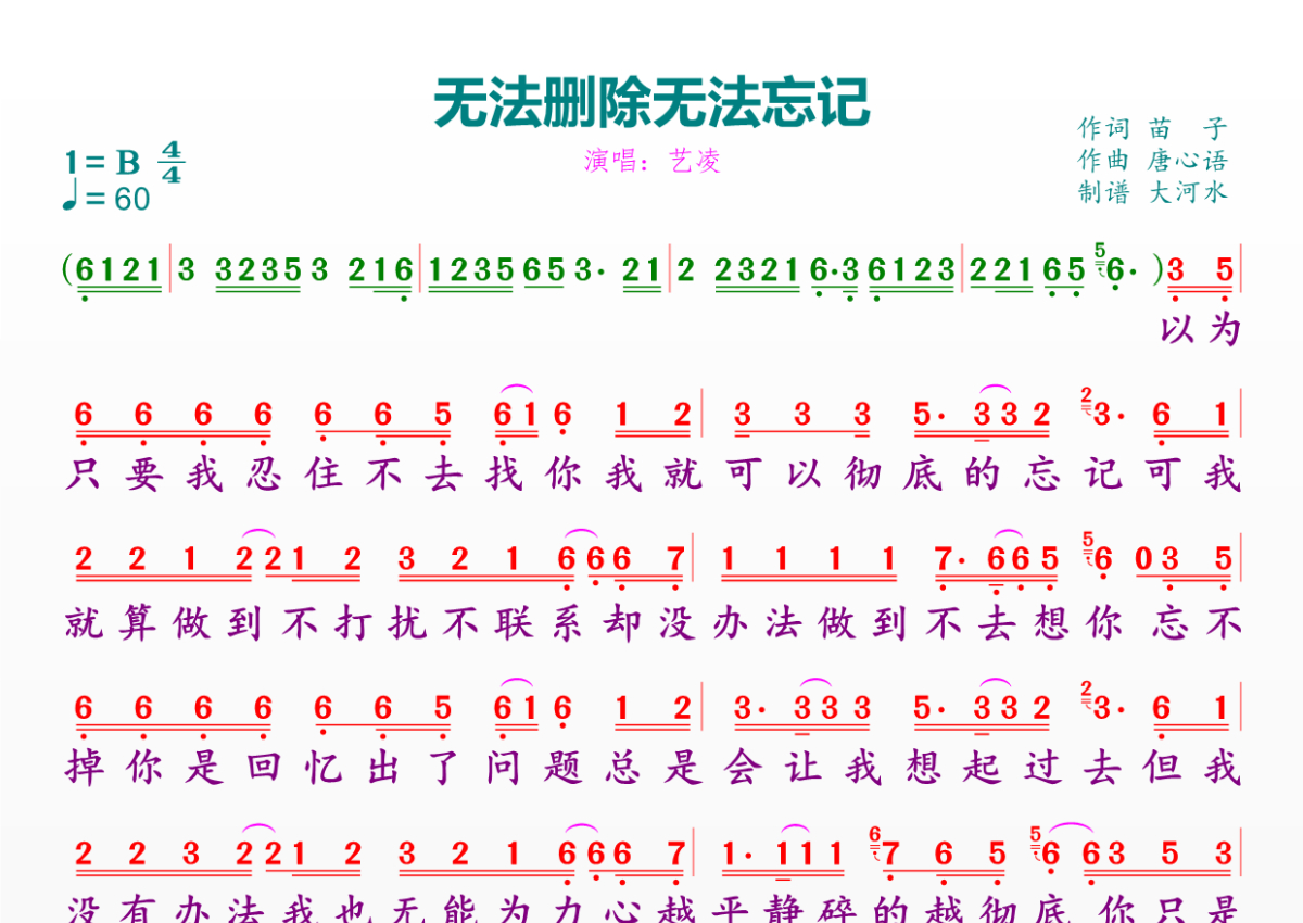 无法删除无法忘记简谱 - 艺凌演唱