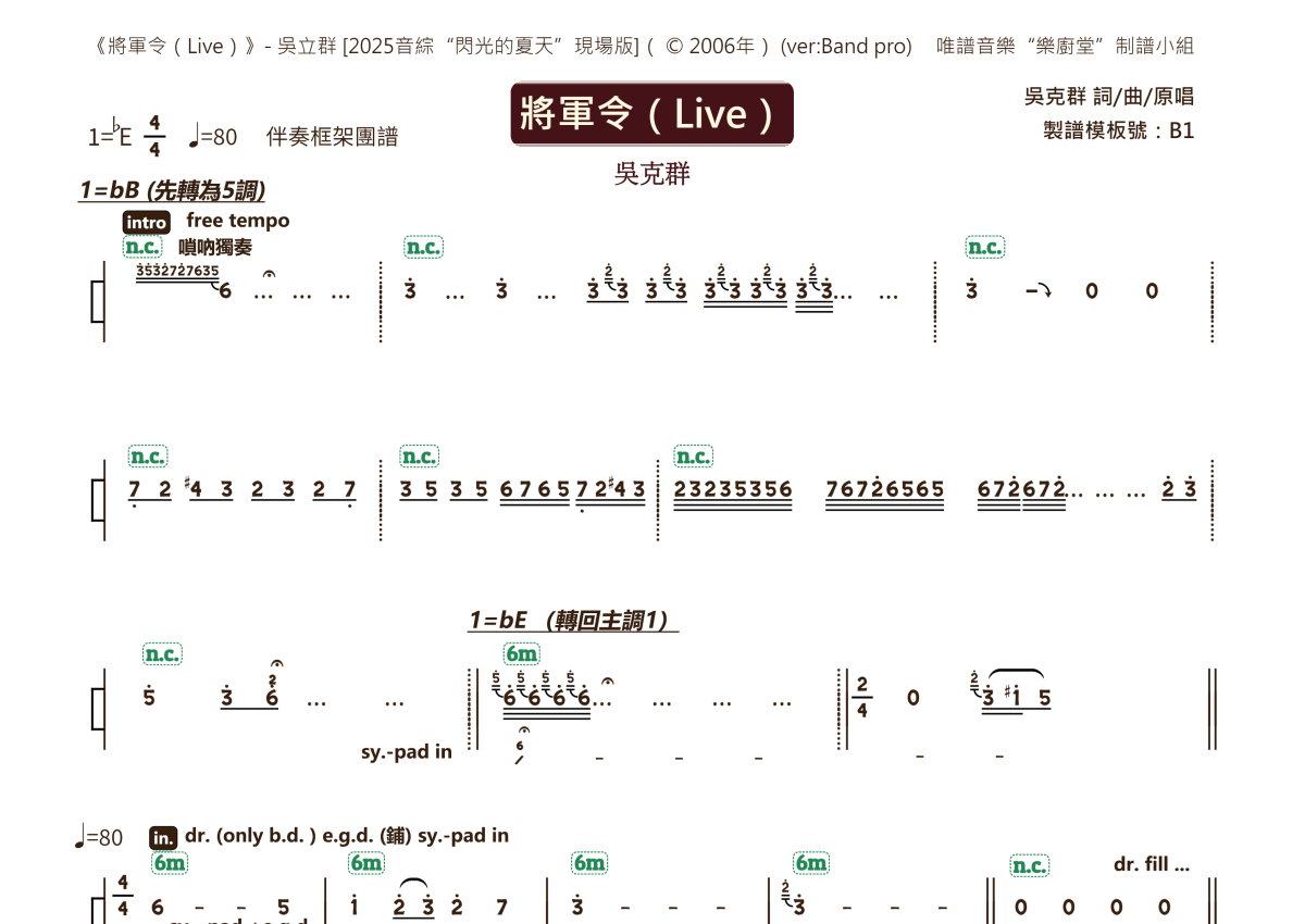 吴克群《将军令(Live)》乐队总谱 - 框架功能谱团谱