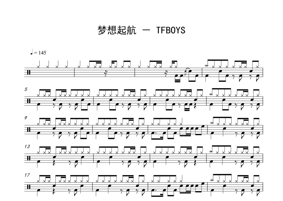 TFBOYS《梦想起航》架子鼓谱